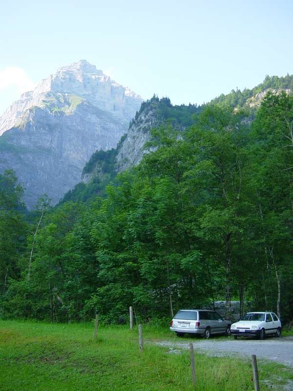 Der Parkplatz bei Tierfed und die schöne Pyramide vom "Selbstsanft" (so sanft scheint mir der Berg allerdings nicht zu sein :-) )
