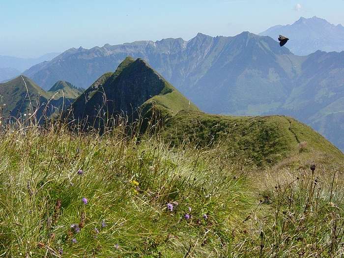 Schnappschuss mit Bergdohle, Rechts Storeggpass!
